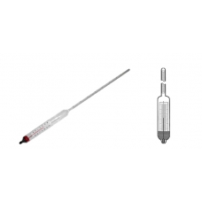 Прибор представляет собой запаянную стеклянную трубку, в которую вставлен точно рассчитанный груз, термометр и мерная шкала для измерений плотности. Термометр расположен в нижней части прибора и погружается в жидкость. Отметки плотности делаются по шкале, всплывающей над поверхностью, по верхней части мениска.