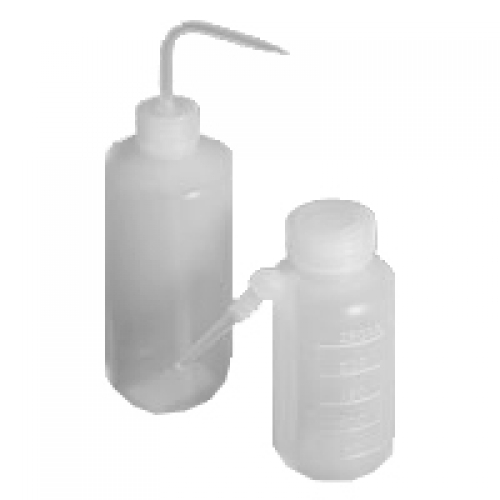 Полиэтиленовая промывалка — простое и удобное приспособление. Ею можно ополаскивать лабораторную посуду или доставлять очищающий раствор в места, до которых сложно добраться иным способом, чем направленной струей чистящего средства.